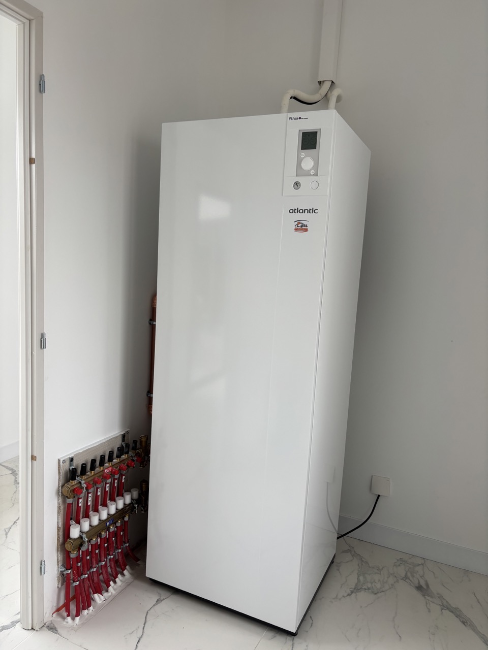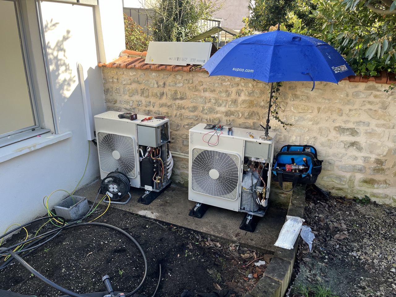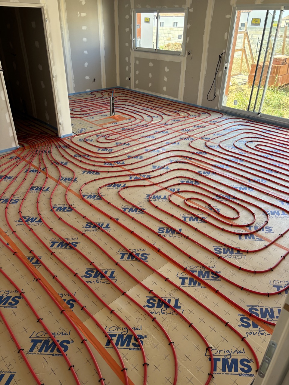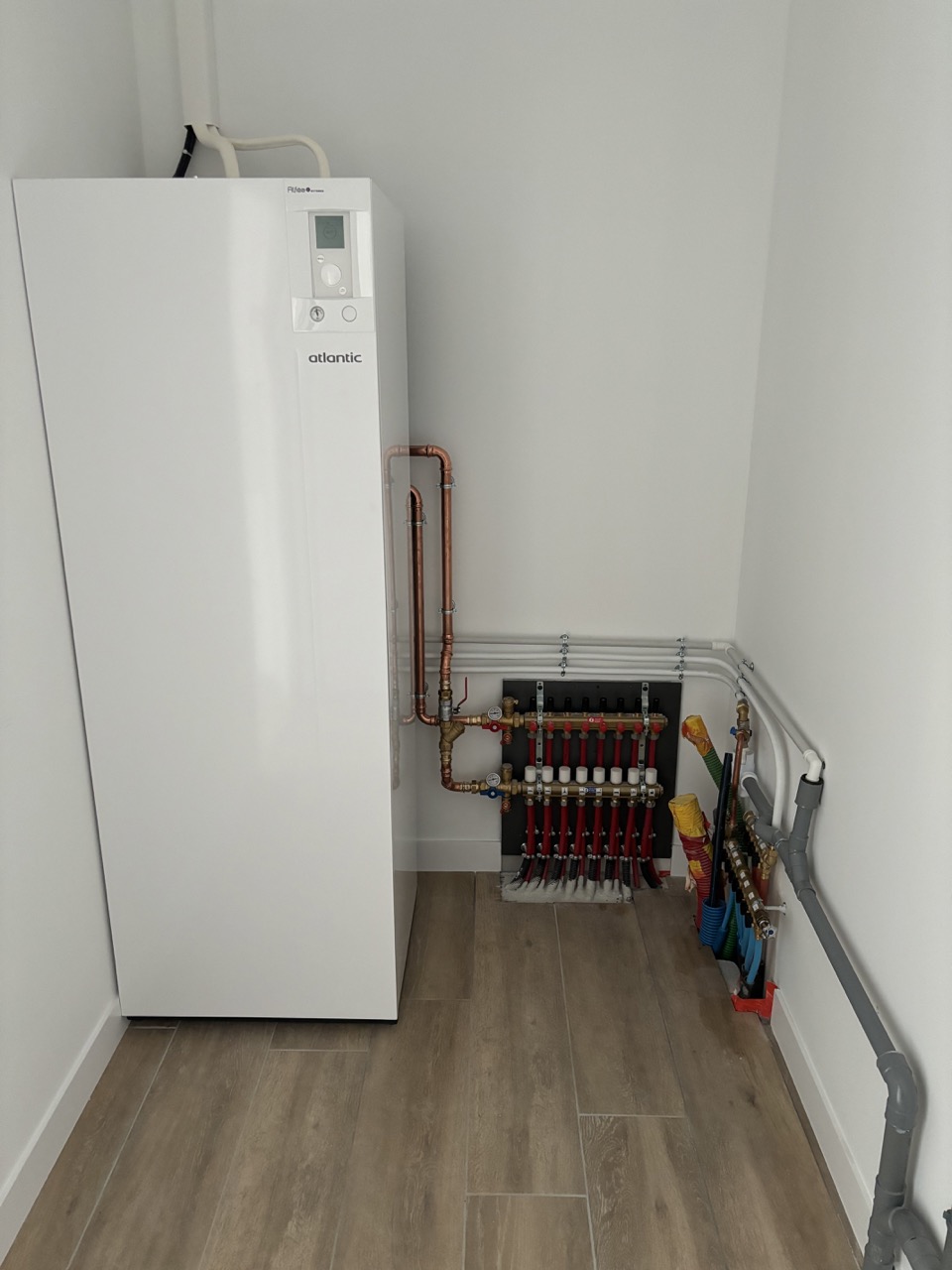 Pour ce projet de maison en construction à Dompierre-sur-Mer, notre client recherchait une solution à la fois économique et confortable. Nous l’avons orienté vers une pompe à chaleur couplée à un plancher chauffant basse température. Ce système assure une diffusion homogène et silencieuse de la chaleur dans toute l’habitation, tout en permettant la production d’eau chaude sanitaire avec une consommation maîtrisée.
